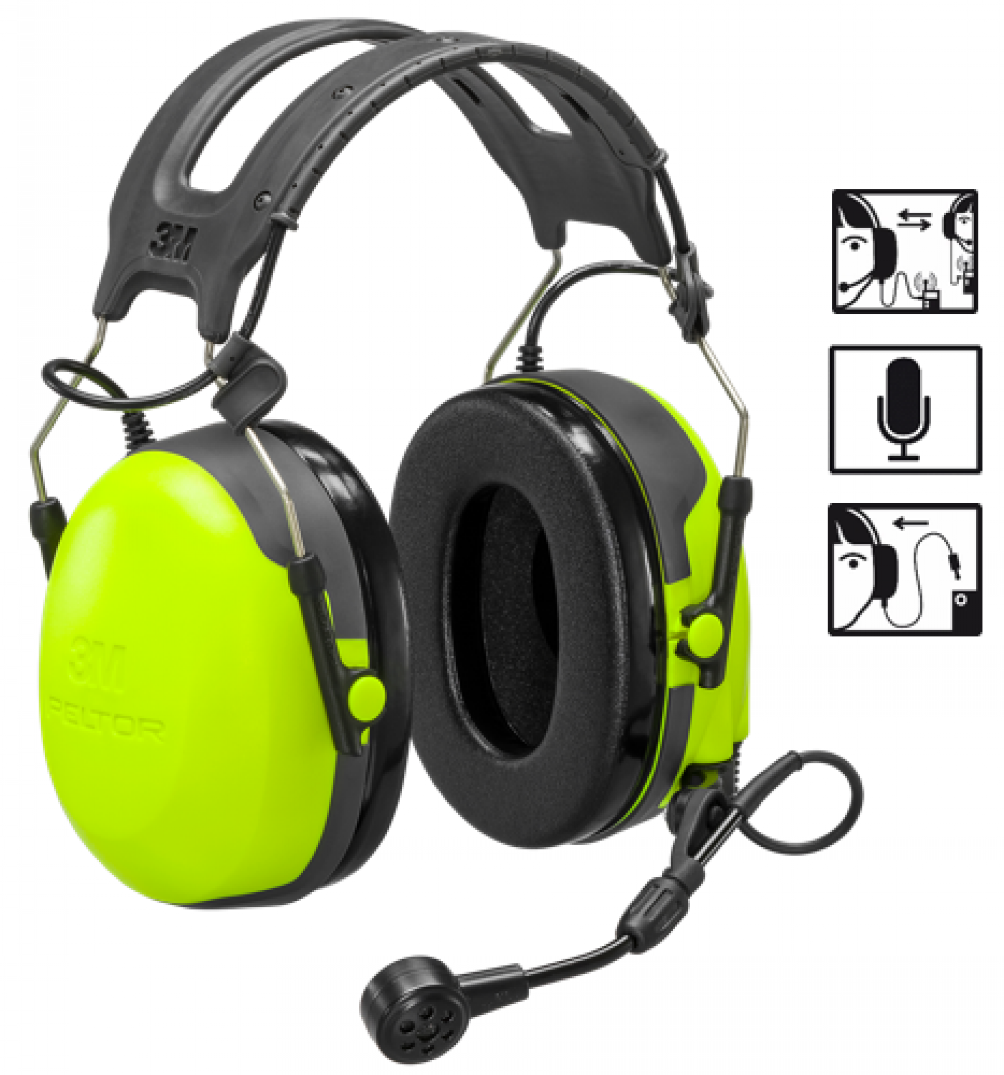 3M™ PELTOR™ CH-3 headsettet uden PTT med hovedbøjle bruger FLX2 kabelsystemet for en enkel og pålidelig forbindelse til et udvalg af radioer, der passer til de fleste applikationer. Klar gul farve for bedre synlighed. Højttalere, der er optimeret til den talefrekvens, der findes i meget støjfyldte miljøer. Moderne kopformet design med god komfort og effektiv dæmpning.