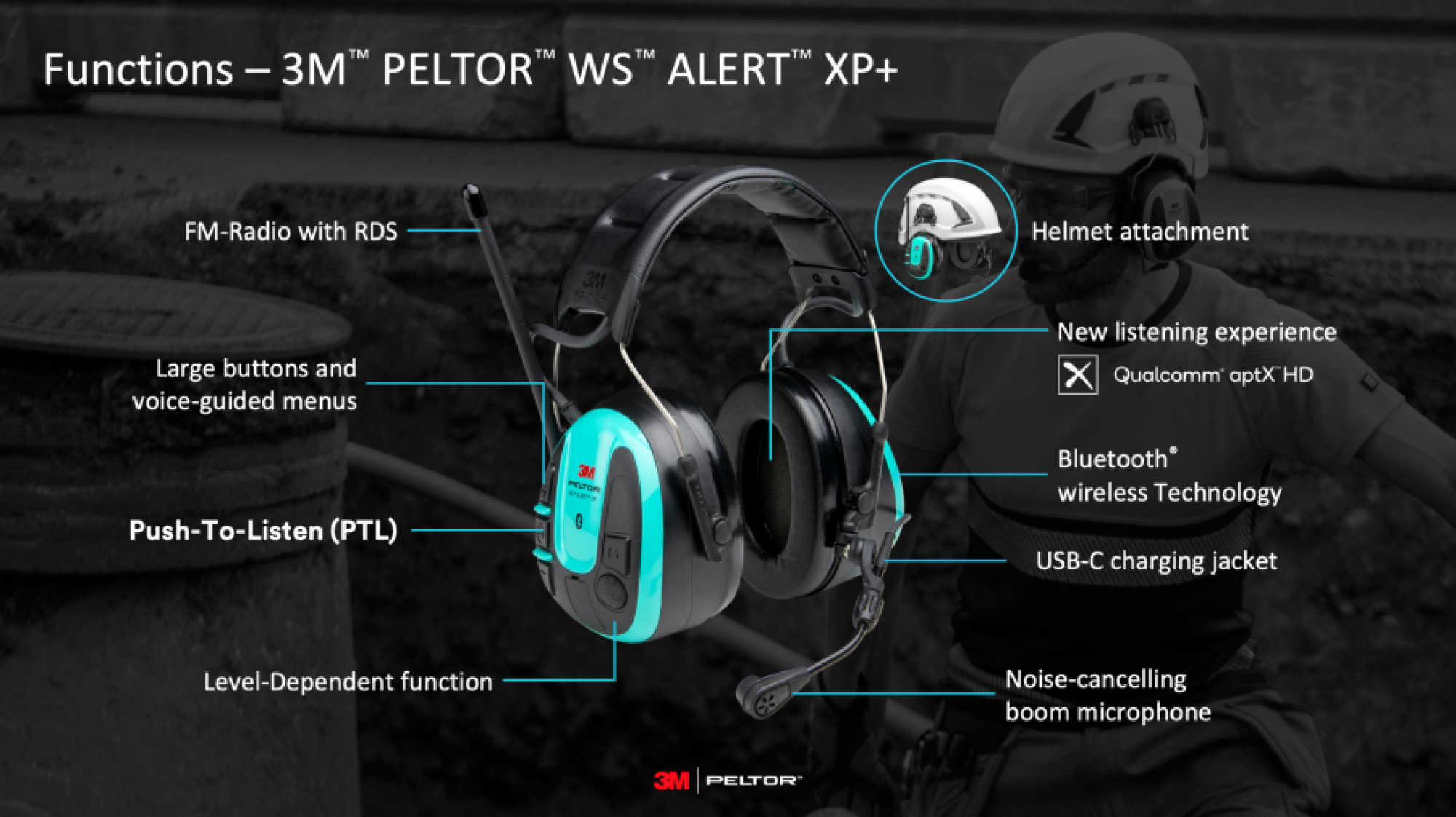 - Level-dependent function for ambient listening to help promote auditory situational awareness.
